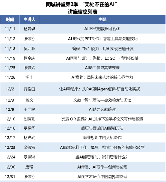主讲内容:写论文卡壳、投稿瞎投还被拒?1 小时解锁 AI 神操作!从选题、文献整理到改稿,再到精准选刊、应对审稿意见,全流程干货 + 学术规范红线,告别 “论文头秃”,助你快速冲发表!
