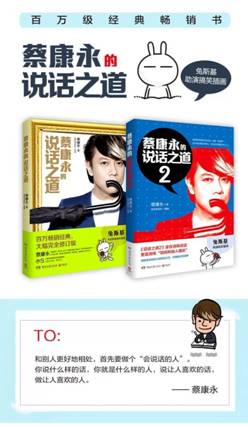 这本书还有一个很特别的地方,蔡康永与兔斯基团队合作,书中的插画生动趣味,让不爱看编排传统正式的书籍的人,也能看得下去。而书中利用生动的漫画,来演绎我们的日常对话,十分“接地气”,看这本书时,你可以与蔡康永有精神交流,你的心里会响起:“原来是这样。我以前怎么没发觉……”等等的话,你会透过一些小细节,对从前吃过的亏犯过的小错误,有一些感悟,甚至是醍醐灌顶。