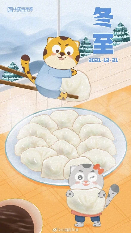 今日冬至,俗语称,“吃了冬至饭,一天长一线。”冬至这天是北半球白昼最短的一天。冬至过后,我们即将进入寒冷时节,我国民间有“夏至三庚入伏,冬至逢壬数九”的说法,也有从冬至开始“数九”计算寒天的习惯。冬至又是四时八节之一,我国习俗中也有“冬至大如年”的讲法。冬至这天,北方吃饺子,南方则有祭祖、宴饮等民俗。也欢迎小伙伴们向小图分享自己家乡在冬至这天的习俗。寒意渐浓,愿君冬安!