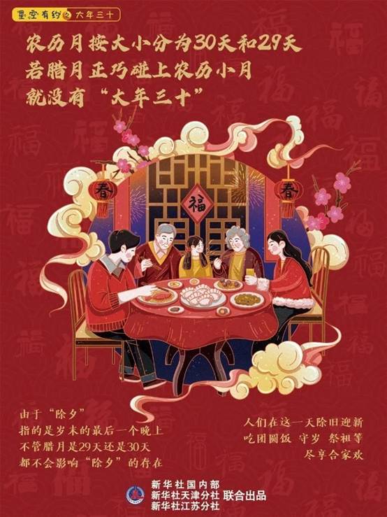 实际上,腊月逢小月的情形并不少见。“2013年、2016年,以及从2025年到2029年的连续5年,都没有‘大年三十’。不过,由于‘除夕’指的是岁末的最后一个晚上,不管腊月是29天还是30天,都不会影响‘除夕’的存在。人们在这一天除旧迎新,吃团圆饭,守岁,祭祖等,尽享合家欢。”成灼说。