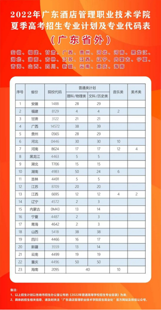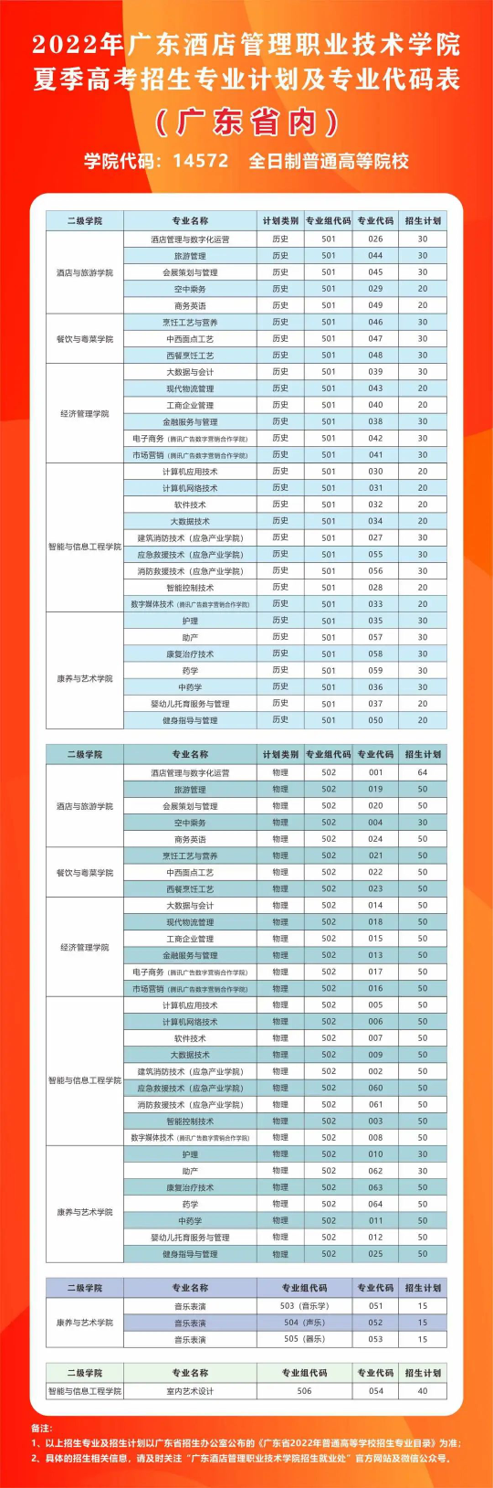 广东酒店管理职业技术学院夏季招生专业计划出炉!