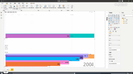目前网上实现动态条形图现成的工具很多,今天就来介绍一下在Power BI里面实现的一个非常简单的方法,那就是例用视觉对象来实现动画条形图的效果,直接搜索Animated Bar Chart Race加载条形图项就可以了。