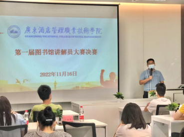 为庆祝党的二十大胜利召开,全面提升学生综合素质,展示图书馆良好育人形象,11月16日下午,学校第一届图书馆讲解员大赛决赛在图书馆北区四楼多媒体中心顺利举办。学校中职部副校长廖振华、校团委副书记王高、中职部团委书记周日波、酒店与旅游学院商务英语教研室主任黄丽华、图书馆流通部负责人张舒琪出席并担任评委,参赛选手以及来自全校各学院(部)近80名师生参与了活动。活动由图书馆学生团队负责人、康养与艺术学院2021级中药学专业朱红同学主持。