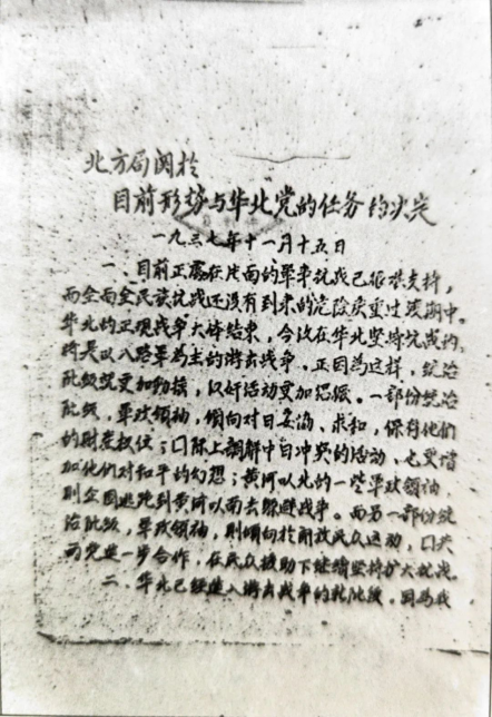 刘少奇为北方局起草的《目前形势与华北党的任务的决定》