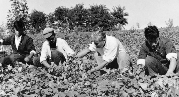 1958年8月,刘少奇在秦皇岛市郊同农民一起翻红薯秧