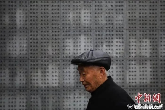 阮定东在侵华日军南京大屠杀遇难同胞纪念馆南京大屠杀遇难者名单墙前。泱波 摄