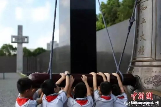 图片南京小学生撞响和平大钟。泱波 摄