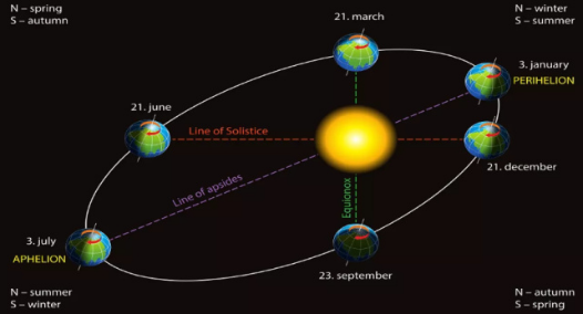 这是因为行星的轨道都是椭圆的,而且太阳并没有在最中心,所以接受阳光的情况除了和倾斜角有关之外,还和它离太阳的距离有关。