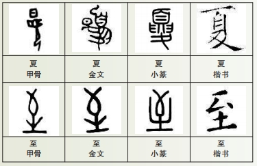 早在商代甲骨中,作为季节的春和秋就已出现。到了西周时期,才出现了作为季节的夏和冬。夏何以得名?追溯早期的文字、音韵和训诂资料可知,“夏”兼有夏季、大夏、华夏诸义,蕴含着壮大、壮美的词义特点。就字形而言,在甲骨文中,就出现了用作人名的“夏”字,上从日,下像人形,描绘出烈日炎炎下人跪坐在太阳之下的景象,形义与天气炎热有关。在金文、小篆、隶楷阶段,“夏”的字形几经变化,有的增添手、足之形,发生繁化;有的简省日、手之形,发生简化,并最终演变为楷书的“夏”字。许慎着眼于小篆“夏”像人形,故《说文》:“夏,中国之人也。”这是紧扣华夏之义作出的解释。从音义来说,无论是季节之夏,还是华夏之夏,与嘏、假等词音近义通,取义于大。扬雄《方言》:“嘏,大也。”“秦晋之间,凡物壮大谓之嘏,或曰夏。”又云:“夏,大也。”“自关而西秦晋之间,凡物之壮大而爱伟之谓之夏,周郑之间谓之嘏。”扬雄指出,夏和嘏是方言音转,均有壮大之义。表示壮大义的嘏,亦通作“假”。《汉书·律历志》:“夏,假也,物假大乃宣平。”这是说夏、假音义相通,夏季因万物长大、阳气旺盛而得名。《白虎通·号》:“夏者,大也,明当守持大道。”这是说有夏一朝因守持大道而得名。三代以夏为始,华夏也由此得名。在“夏”的造字和命名中,蕴含着古人对夏季之时令特点的观察。至于“至”字,甲骨、金文中的至,像箭射中靶子,至的本义是到达,引申有极点的意义。