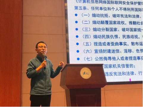 为了使在校学生在信息安全方面了解最新情况、保持安全意识;12月11日下午在报告厅举办了一场讲座形式的讲解,由东莞理工学院李银副教授主讲,共吸引百余名学生参加。本次讲座主要向学生们科普信息安全、防诈骗等知识,临近尾声李银副教授与图书馆余娟老师,与同学们进行答疑互动,增加趣味性和学生的参与感,也提高了学习效果。