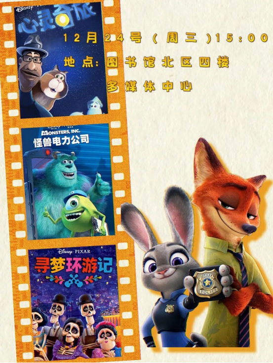 播放顺序:《疯狂动物城》《心灵奇旅》《怪兽电力公司》《寻梦环游记》。