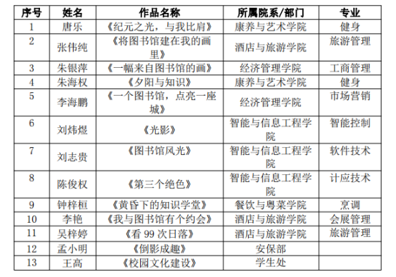 为深度挖掘广酒校园之美,丰富师生课余文化生活,充分展示学校图书馆C位形象,图书馆举办了粤港澳大湾区最美校园图书馆暨首届心中最美广酒微摄影大赛。经初步评审,现将决赛入围名单公布如下: